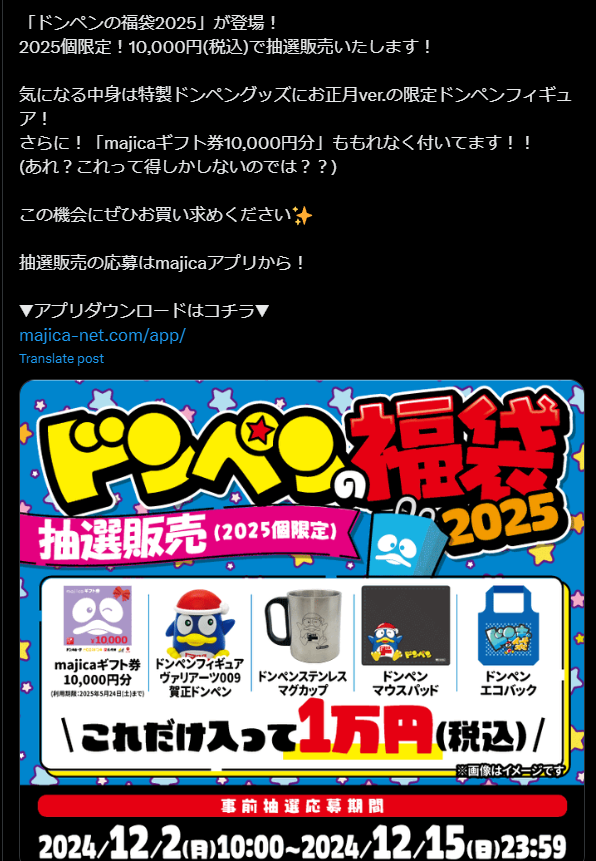これ、1万円分の購買確約券だからドンキ的には福袋と券で2万円分購入してもらったことになるんだよなw
