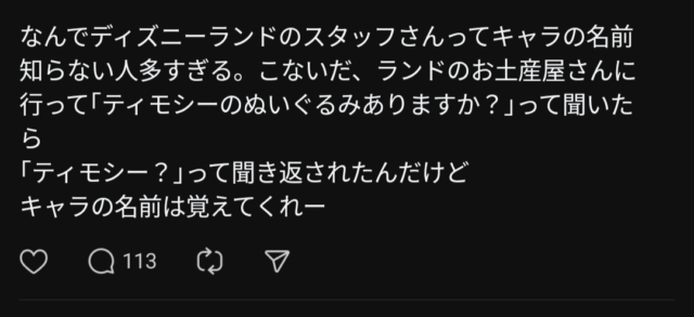 さすがにディズニー好きでもマイナーすぎるキャラは知らないだけ?