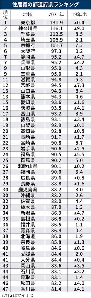 特に単身ではなくファミリーサイズになると京都、大阪ド真ん中並になってくる