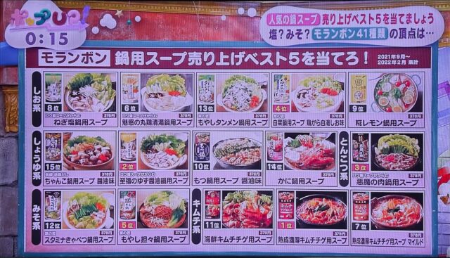 結局キムチ鍋が1位だったわけだけどそれでもタモリと磯野貴理子は信じられない様子だった。