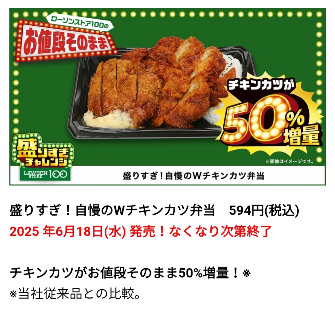 ローソン「大量の商品を長期間増量!50%っていったけど実際はもっと盛ってます!」