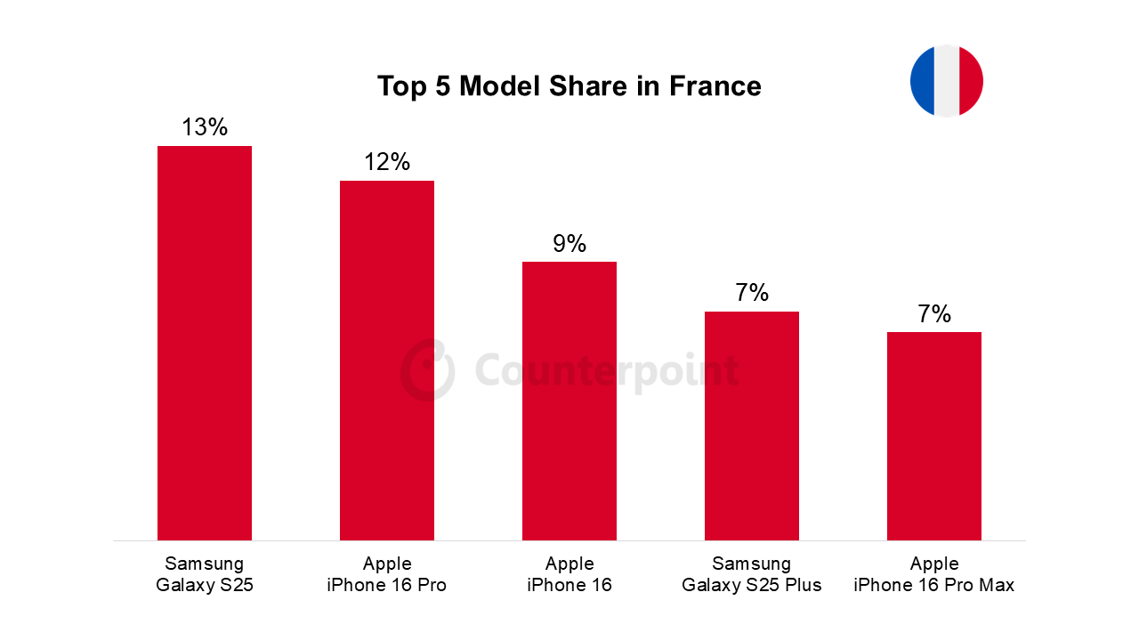 フランス:Galaxy S25(13万円)