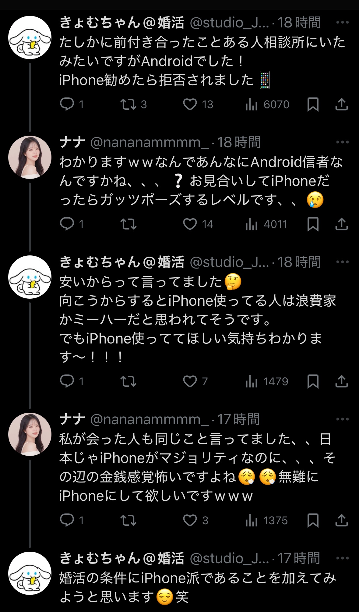 女がiPhoneに固執しAndroidを拒絶する限り少子化は続く