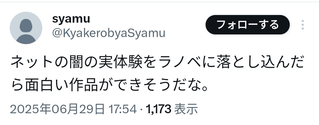 それ小説にしなくてもsyamuの動向追ってればいいだけでは?