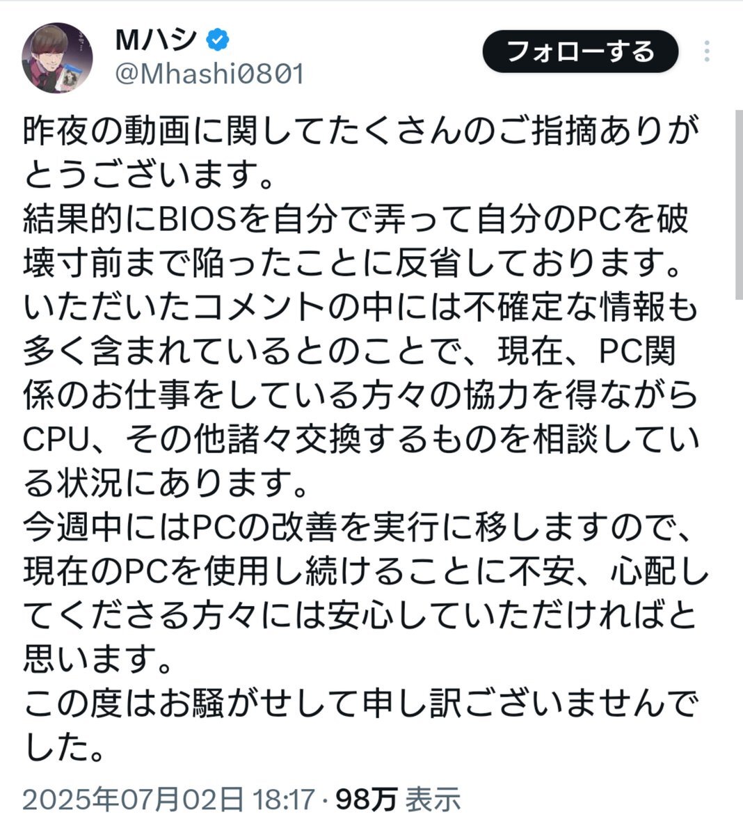 BIOS設定いじるように指示したパソコンの大先生とかいう真の戦犯