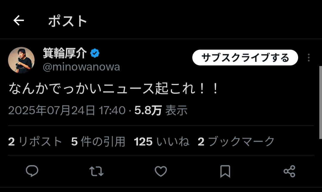 冒頭のポストの後、7月6日には《地球滅亡阻止しました!》とドヤ顔の写真入りで投稿した箕輪氏。だが、自らの欲望は止められなかった――。