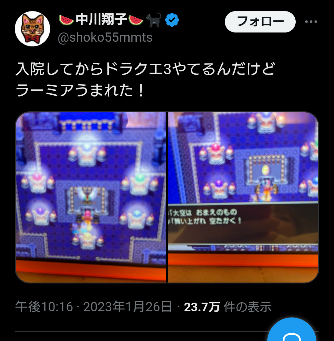 スマホ版「ドラクエ3」配信に興奮するしょこたん。