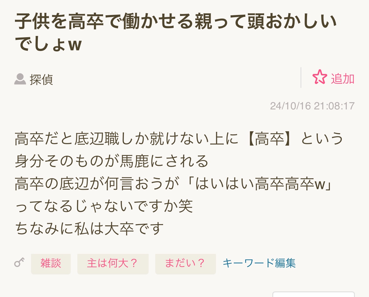 実際にこう思ってる大卒はどの位居るんだろう、別に間違った事は言ってない