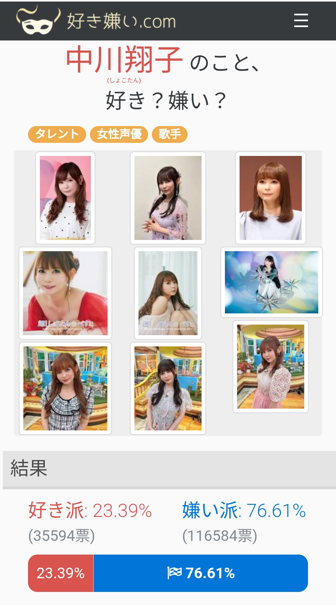 【画像】中川翔子さん、社会の八割近くに嫌われるwwwwwww