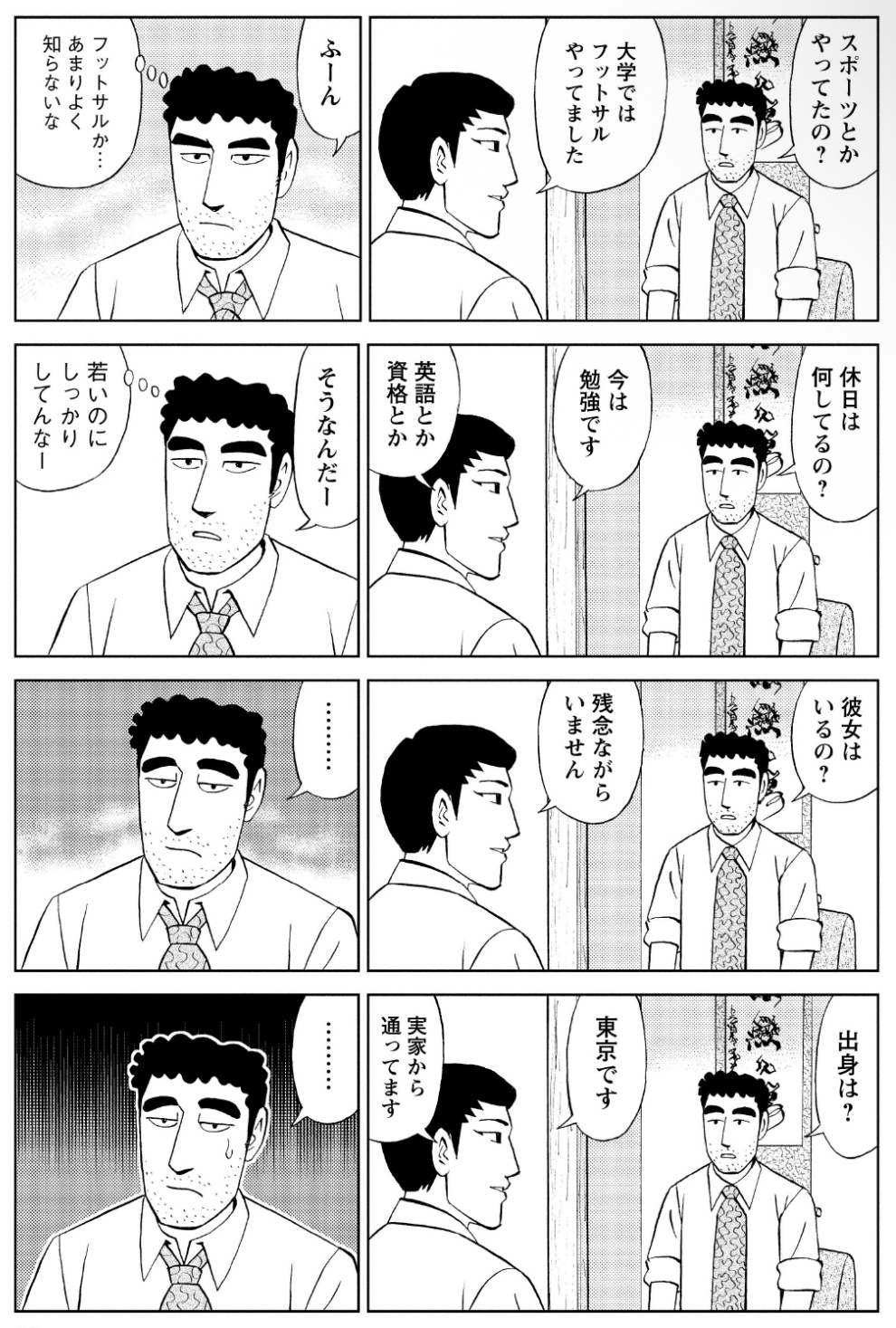 自分で質問して新人からちゃんと想定範囲内の答えが返ってるのに困ってる本物のひろしがコミュ障すぎる