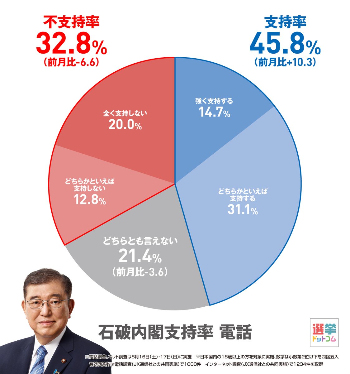 【画像】石破内閣の支持率、35.5%→45.8%へ爆アゲwwwwww