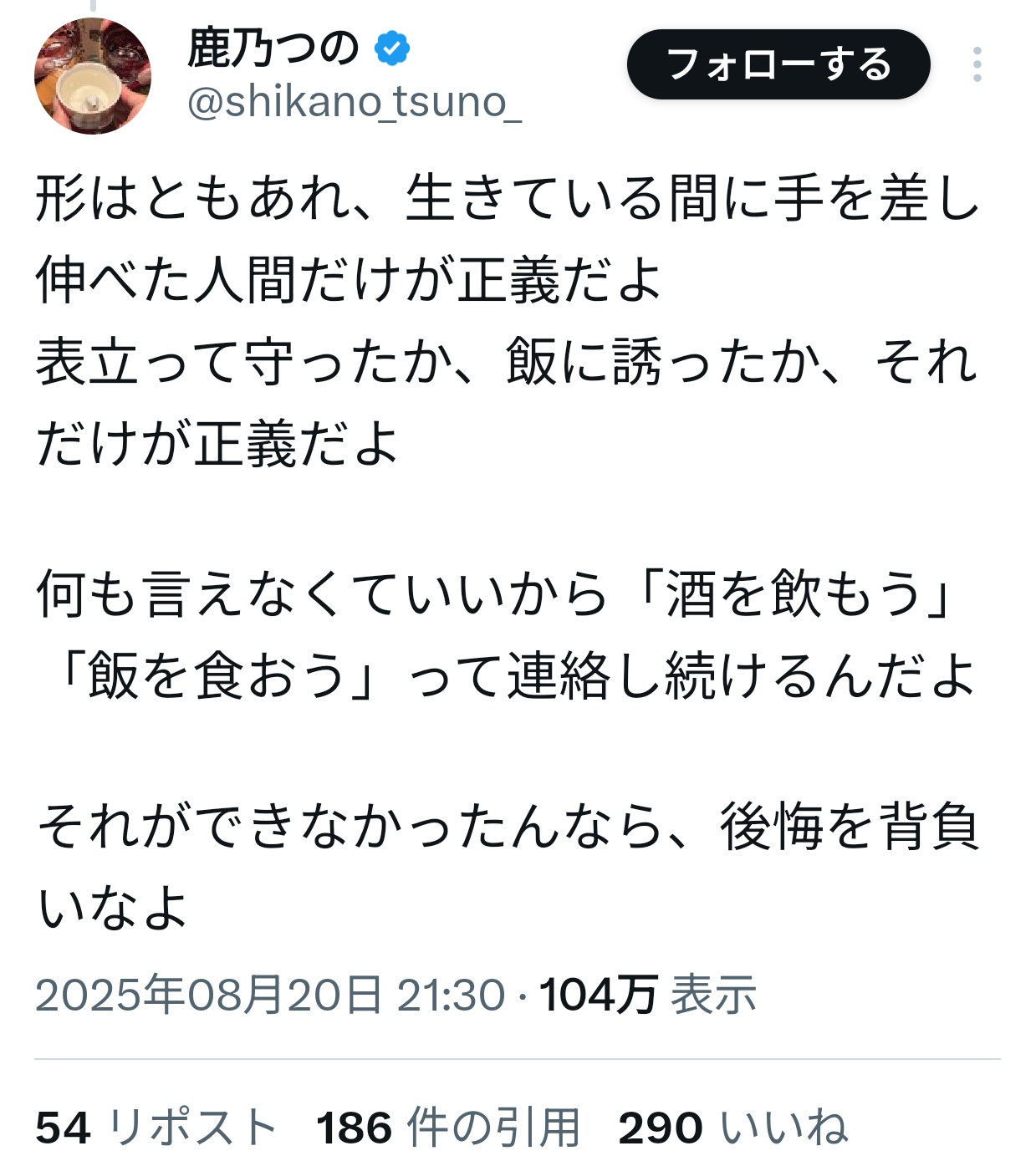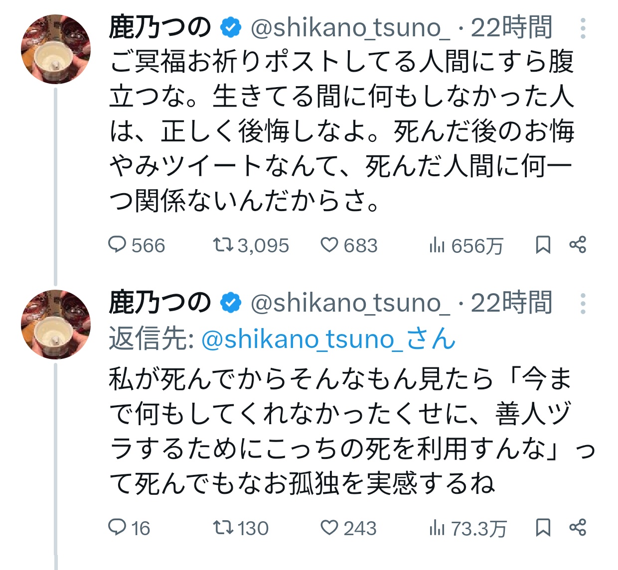 俺らみたいなマジで何もしてない奴がいい人ぶってご冥福ポストすんなって事じゃねぇの
