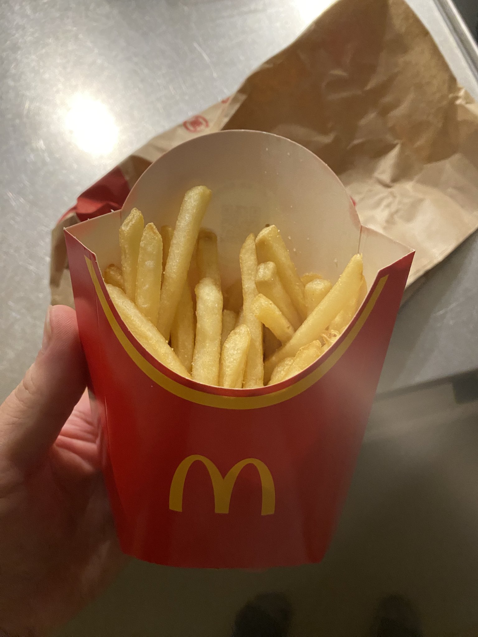 マックのポテトとか不味すぎてどうでもいいから気にした事ないけど公表量あるんだから測ってみればいいのにね