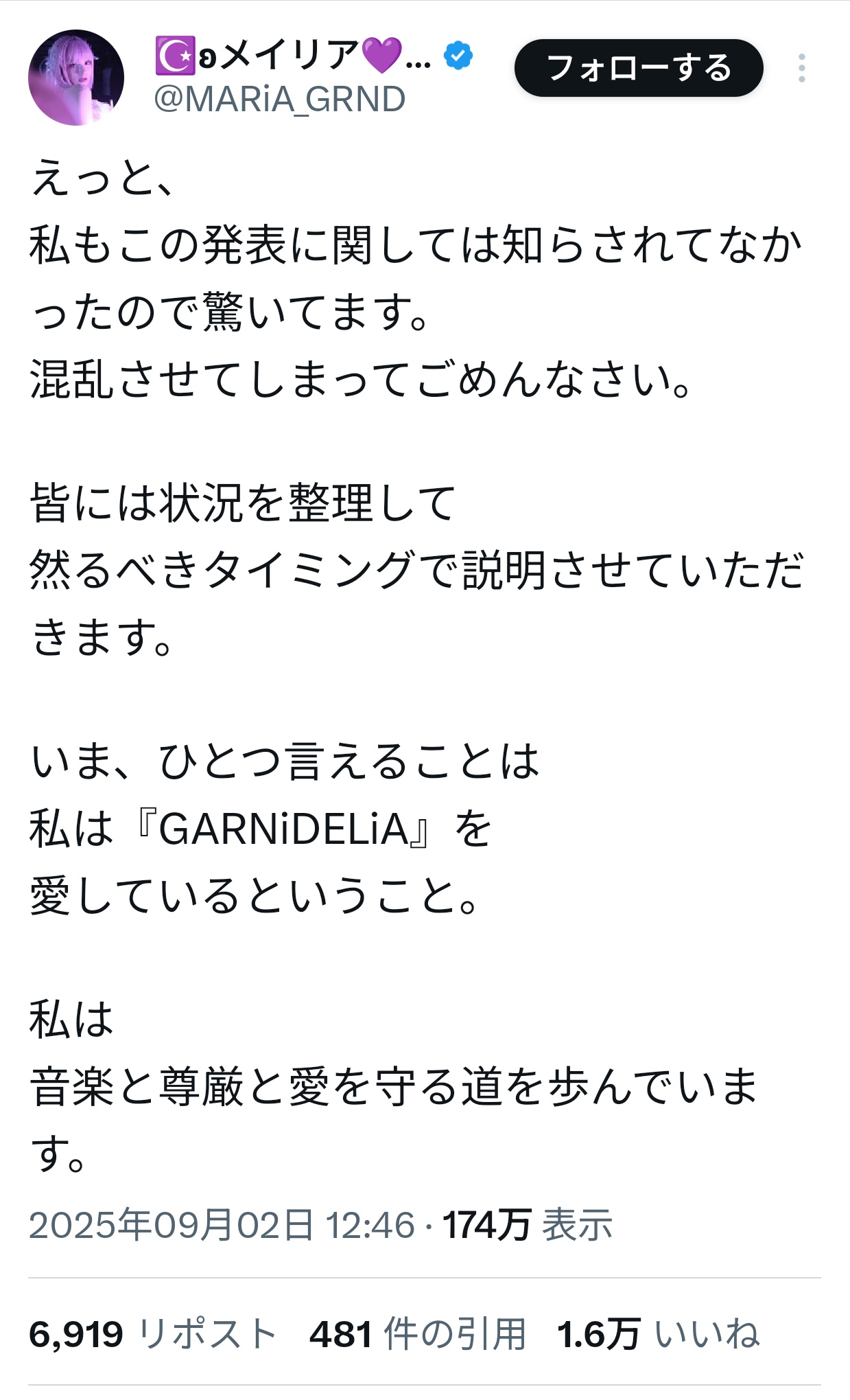 MARiA「知らされてなかった」GARNiDELiA活動休止について経緯説明