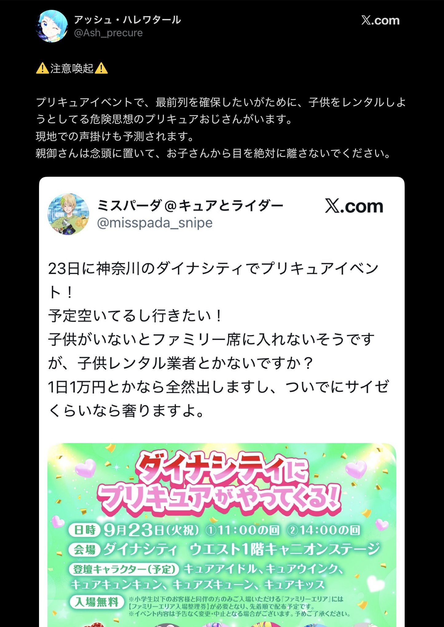 今からでも子供作れば来年のプリキュアから堂々とファミリー層でいけるやろ