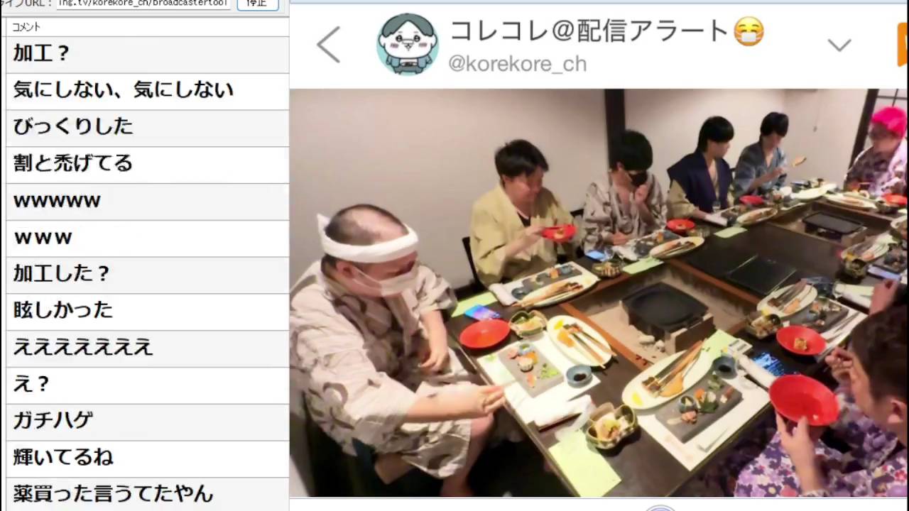 公開されたのは、メンバー全員での夕食中のスクリーンショットで、坊主頭に鉢巻姿のコレコレの頭頂部は、確かに禿げ上がっているように見えました。