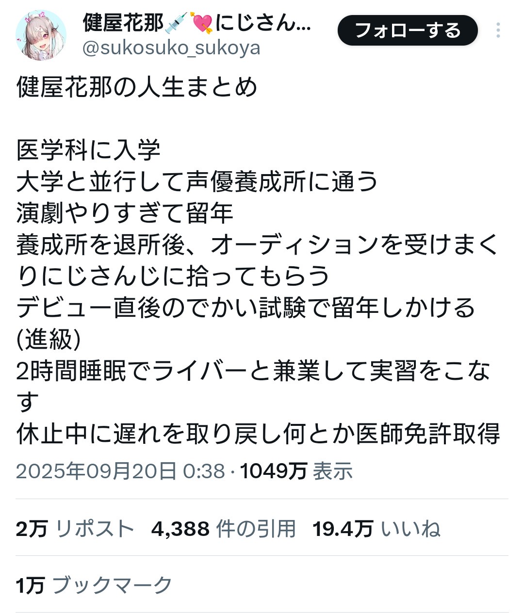 本人談からして医学部入学まで本当だとしても卒業できたかは怪しい経歴じゃね?