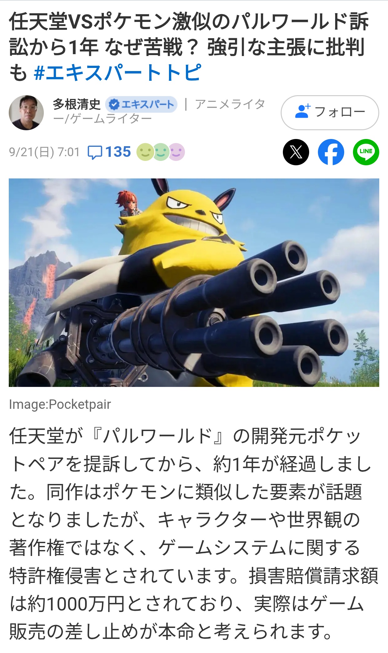 モラルやマナー意識が軽薄で著作権という概念もろくに持ってない外人がパルワールドを応援するのはまぁわかるけど
