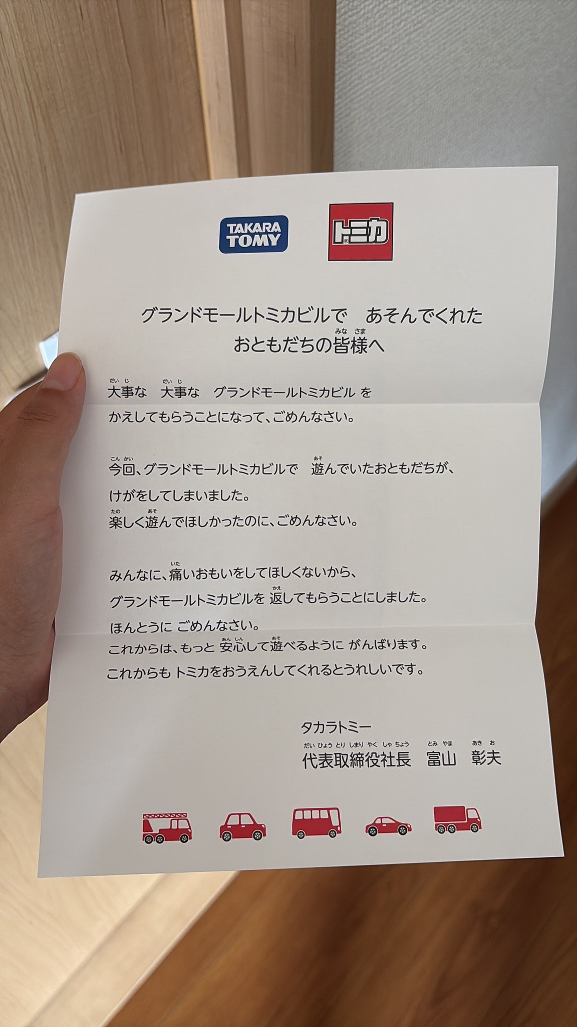 「これからもトミカをおうえんしてくれるとうれしいです。」←これ厚かましいわ