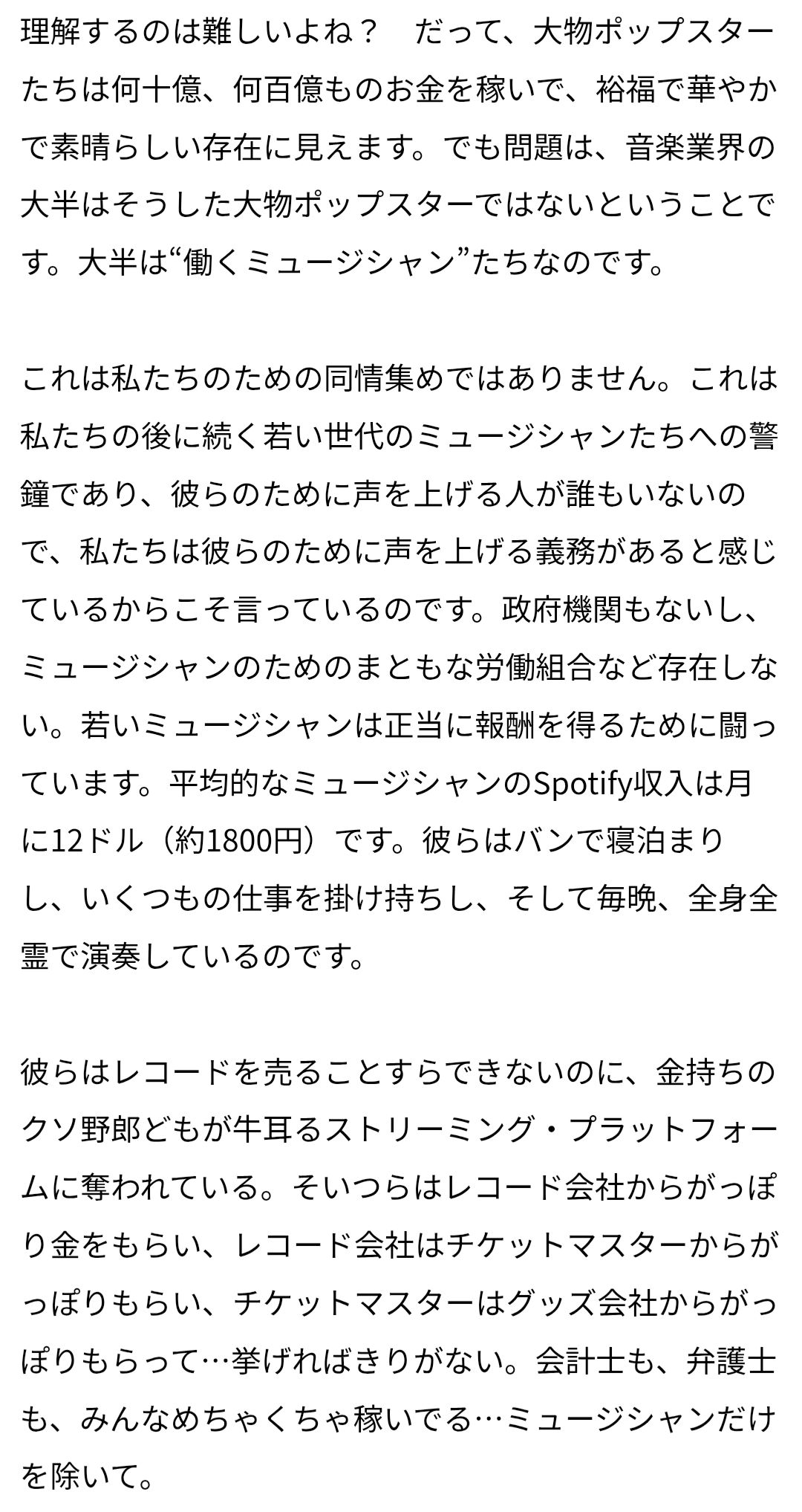 CD→ライブでなんとかマネタイズして来たけど今は有名ミュージシャンでもチケット売れへんらしいからな