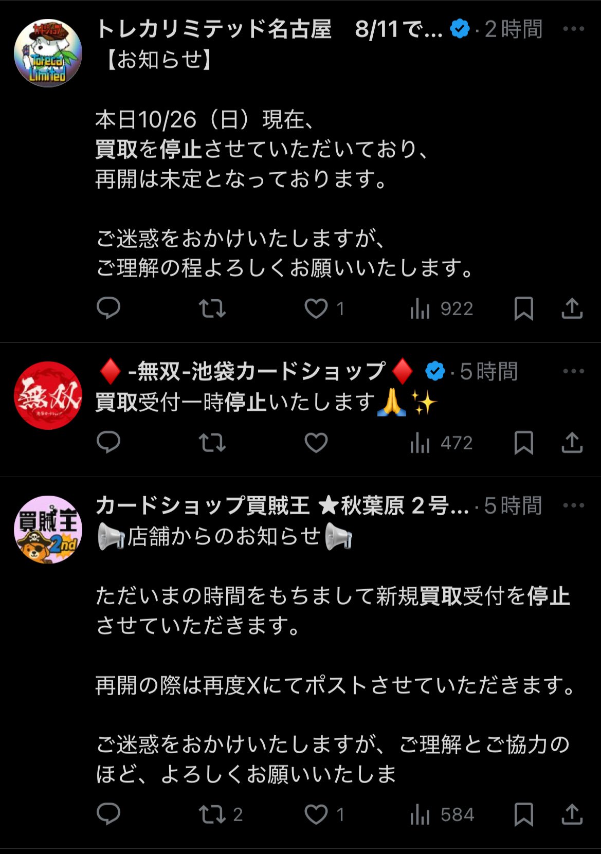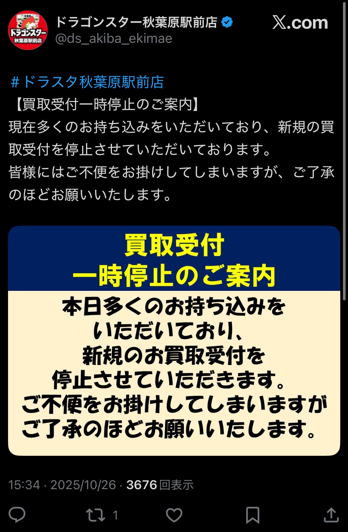 買取停止なんてパック販売日はしょっちゅうやってるけど