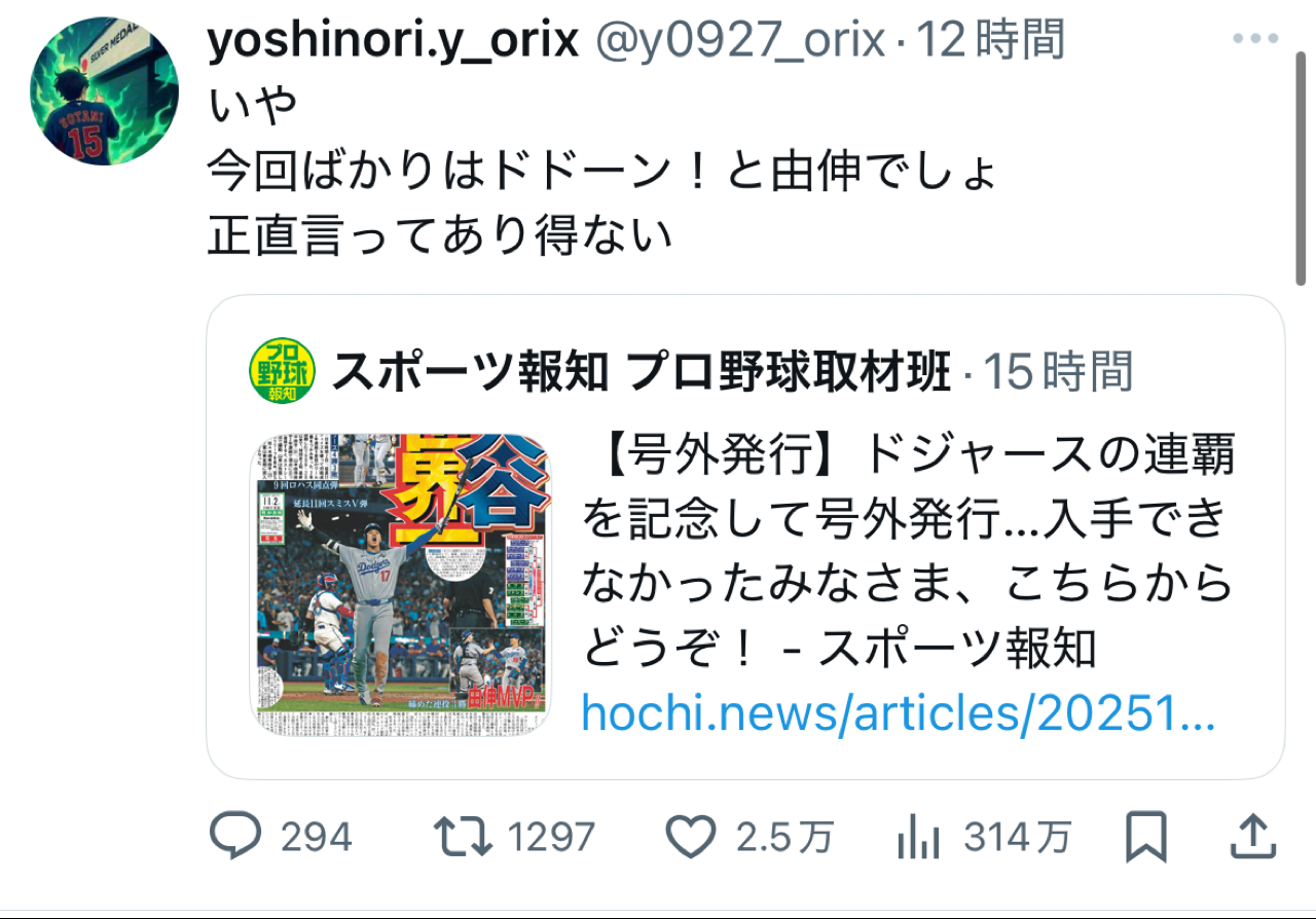 この写真じゃまるで大谷が逆転ホームラン打ったみたいな感じだからよくないよ