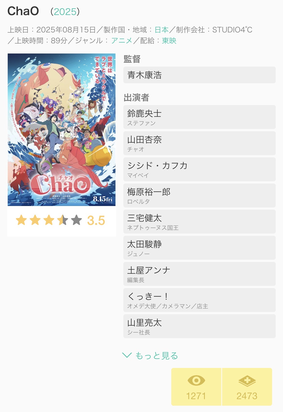 ChaOは鬼滅の刃くらい売れるつもりでスクリーンとグッズ確保したから内容の割に配給で爆死した映画館でパンフとかがワゴンに入ってる