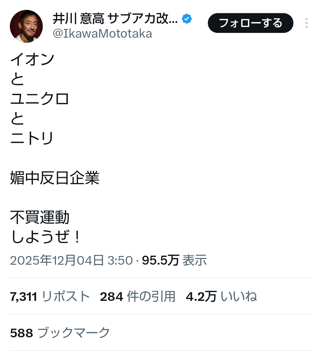 不買運動とか中国人かよ
