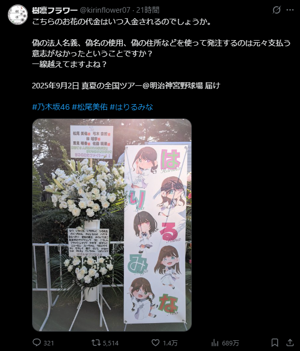 花屋に金払うくらいならグッズにつぎ込んでそう