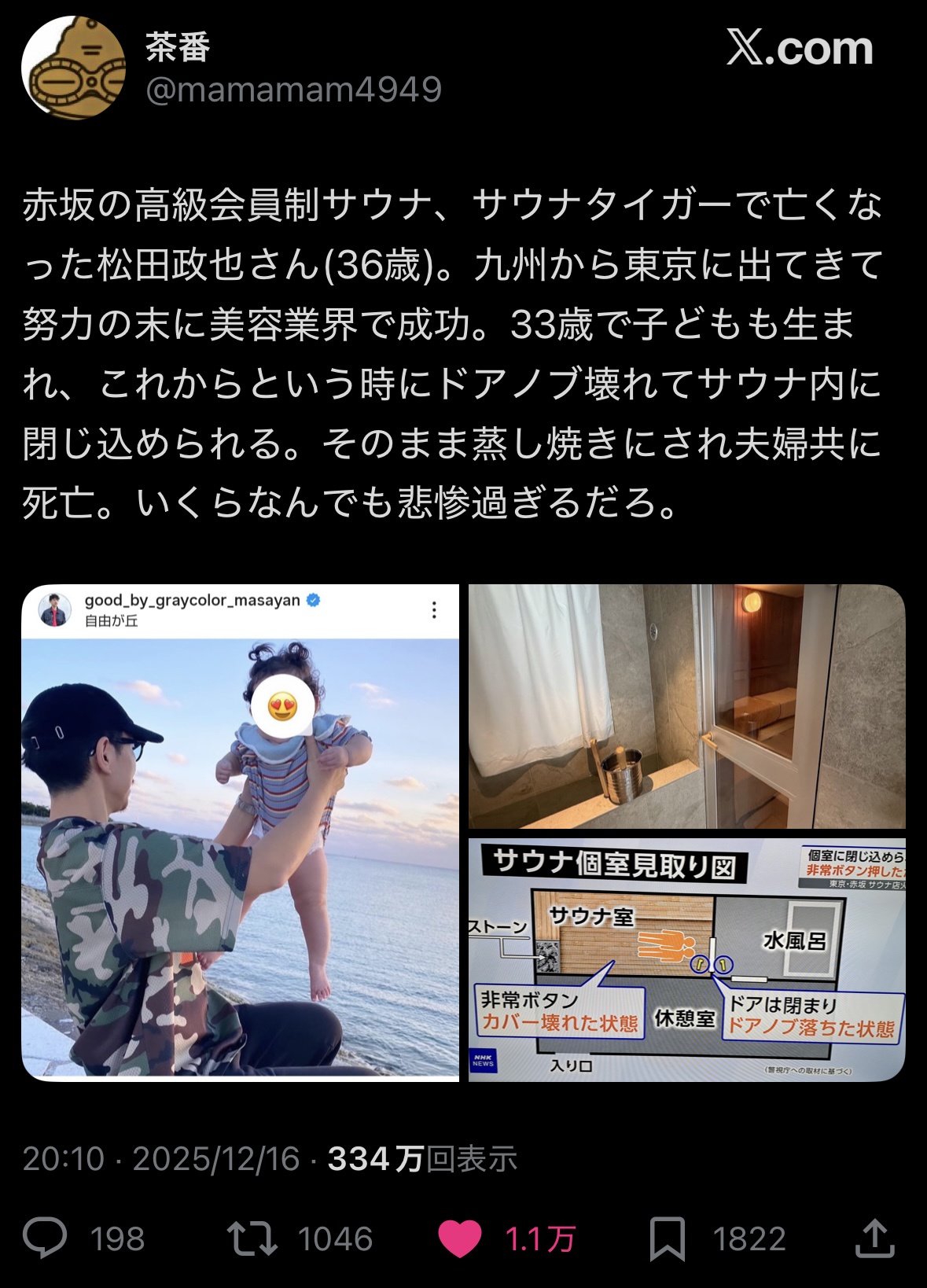 サウナ入ってるタイミングでそんな事が発生するとか事件を感じるわ