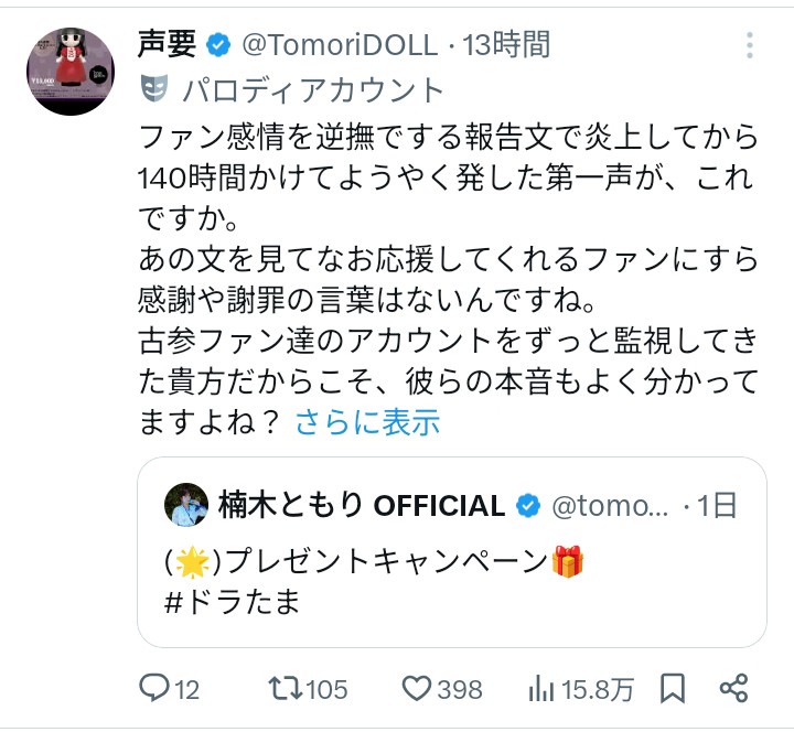 1ヶ月もしたらこんな騒動ください忘れて他の声優に乗り換えるやろ