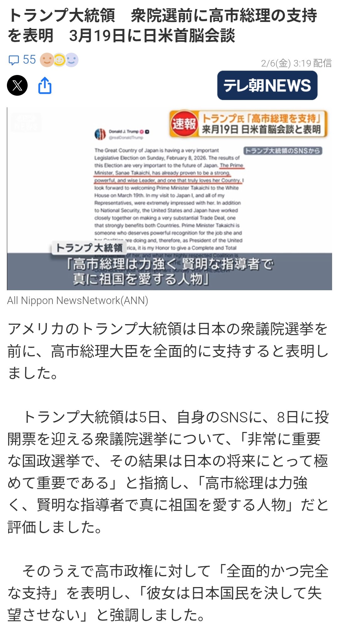 トランプって嫌日家なのに早苗にこの態度なの草
