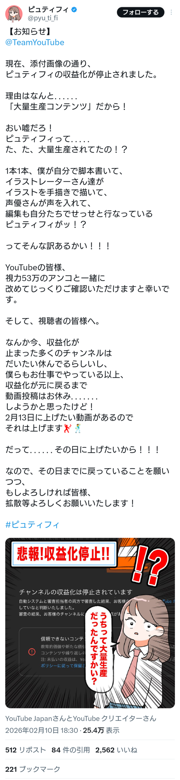 収益停止なると全く動画あげなくなるからな