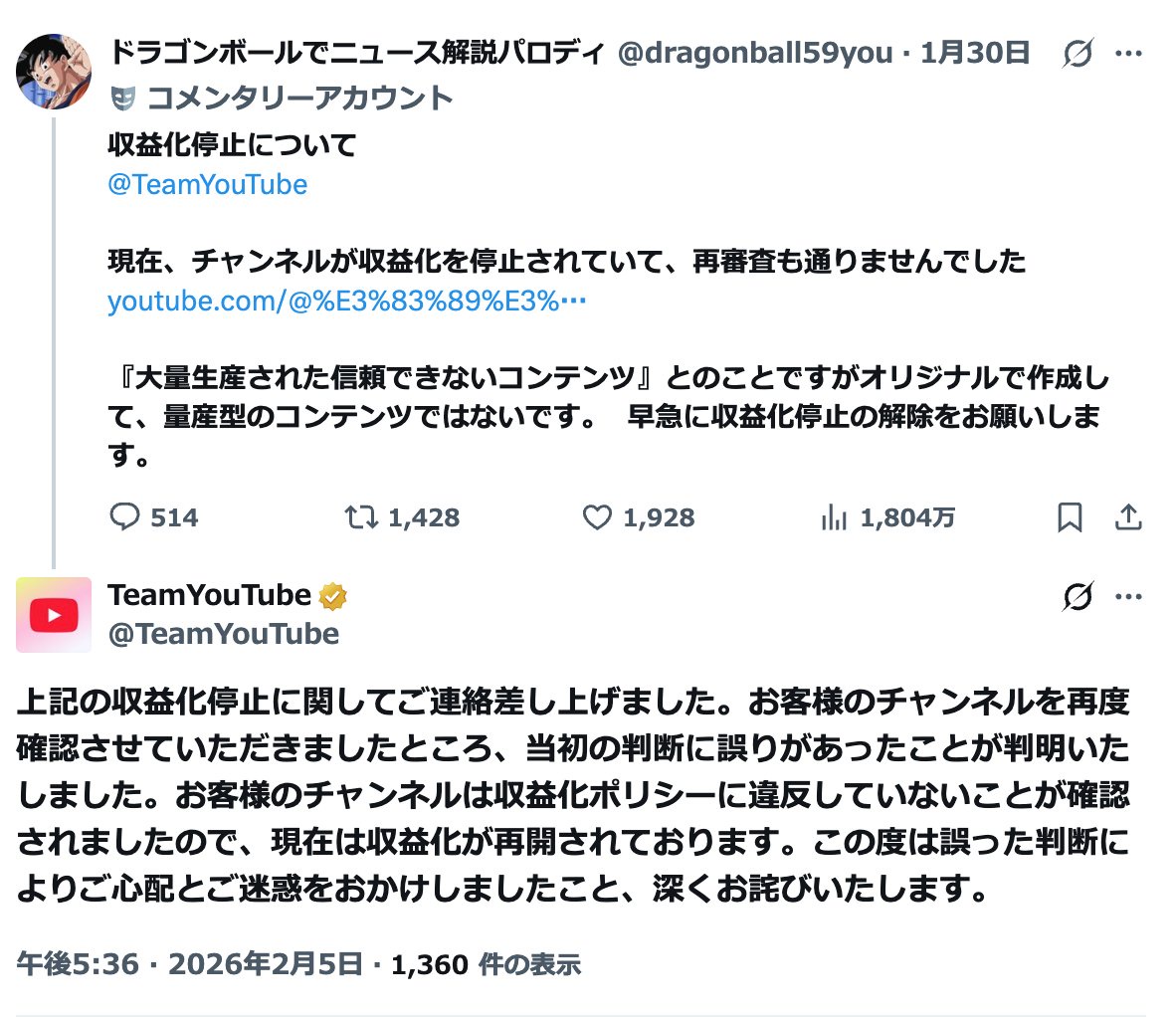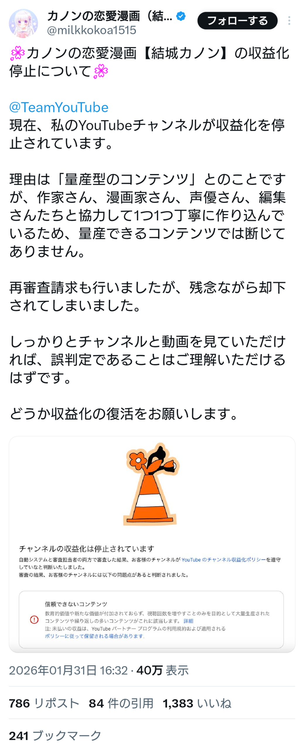 【悲報】YouTubeチャンネル、次々に収益化停止