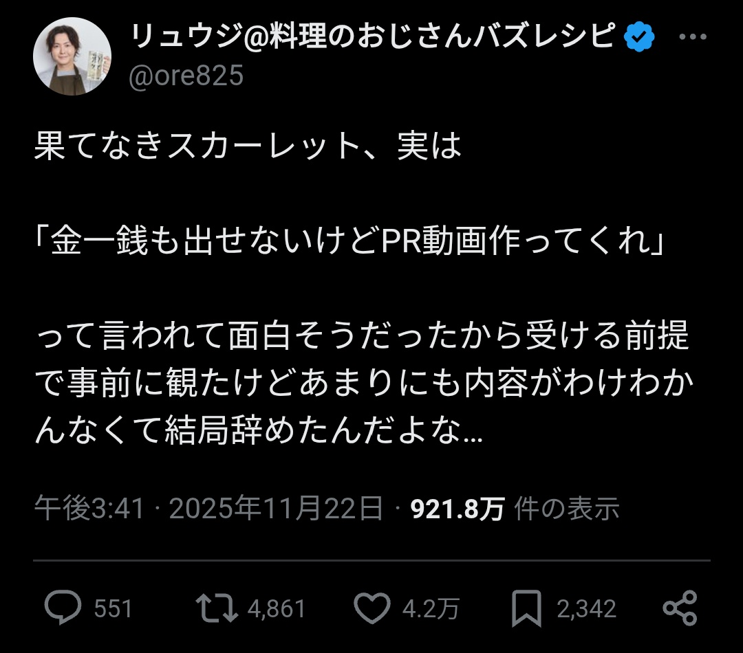 リュウジは好きじゃないが一銭も出せないところでダメな感じ出てる