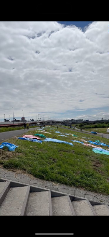 転売というか勝手に場所取って販売したところのシートがちらほら見られるな