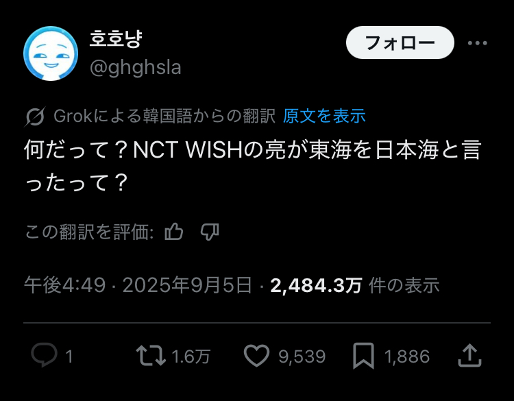 NCT WISHの日本人メンバーのリョウさん、日本のラジオ番組で日本海のことを日本海と言ってしまい韓国で大炎上中