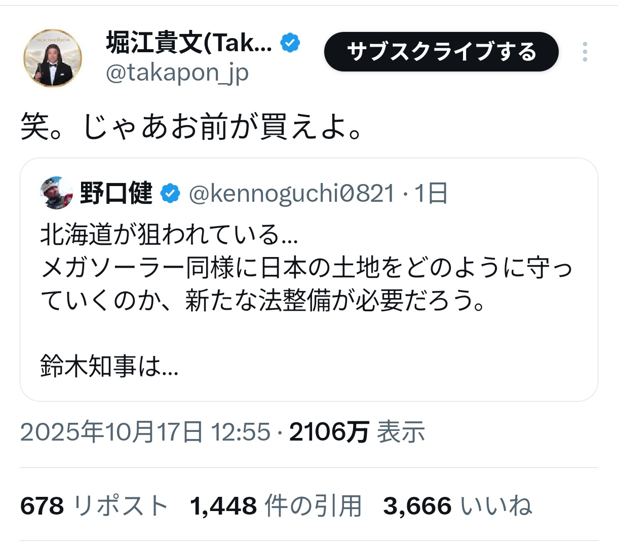 じゃあ日本より中国の方が金持ちになったら日本全土を買い占めてええの?🤔