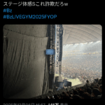 ※ステージ最両端から、ステージ裏に向かって設置する席となるため、ステージおよび演出、メンバーが見えないお席となり、LEDビジョンのみでの鑑賞となります。また、音が聞き取りにくい、機材音が気になる可能性があります。視聴環境を理由にした、ご購入後の返金、座席の振替はお受けできません。予めご理解とご了承のうえ、お申し込みください。